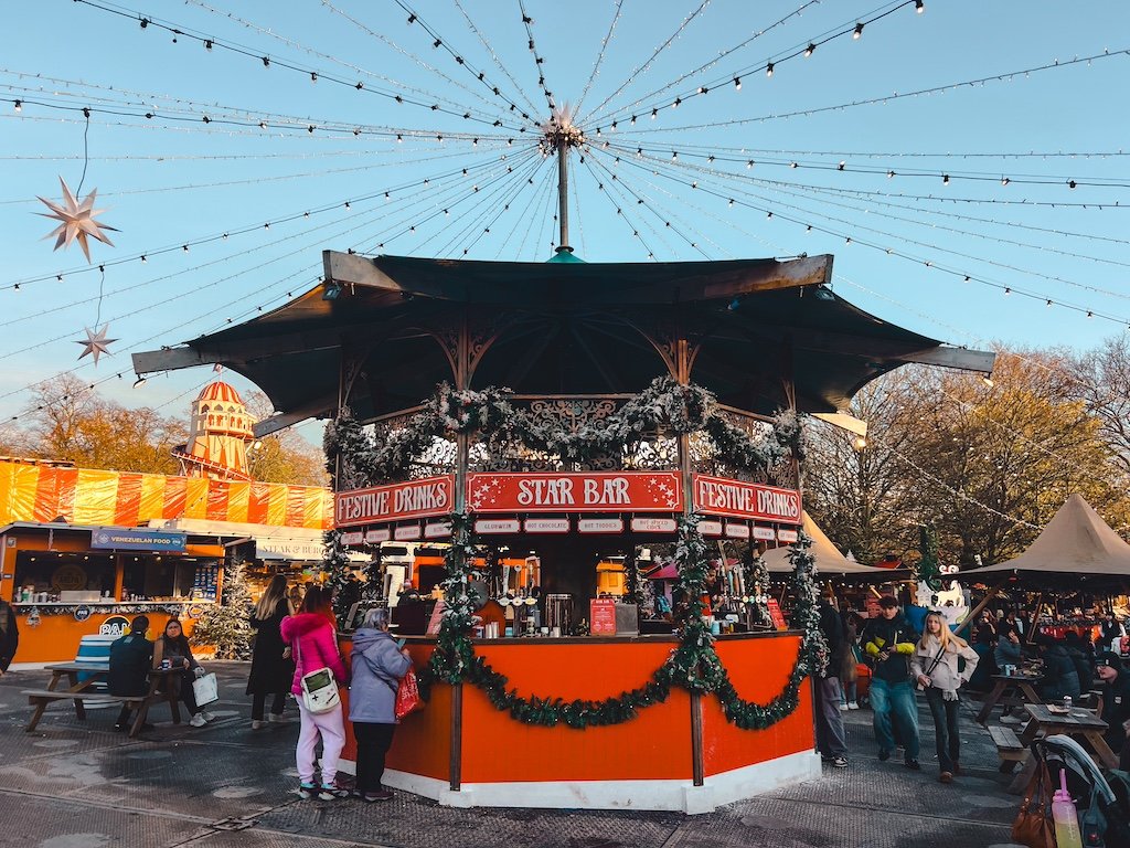 Hay una zona entera dedicada a las atracciones, varias zonas con puestos de comida de todo tipo y una de las áreas de Winter Wonderland está dedicada a las típicas casetas navideñas con adornos, recuerdos navideños, vino caliente…