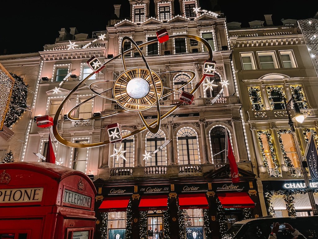 Ver las calles iluminadas en Londres es un imprescindible en tu viaje navideño. Es la ciudad con las luces más bonitas en la que hemos estado.