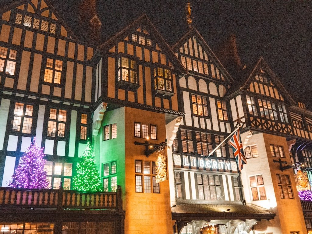 - Tiendas como Harrods, Selfridges y Liberty no solo decoran sus escaparates, sino que también colocan árboles navideños preciosos en sus interiores.