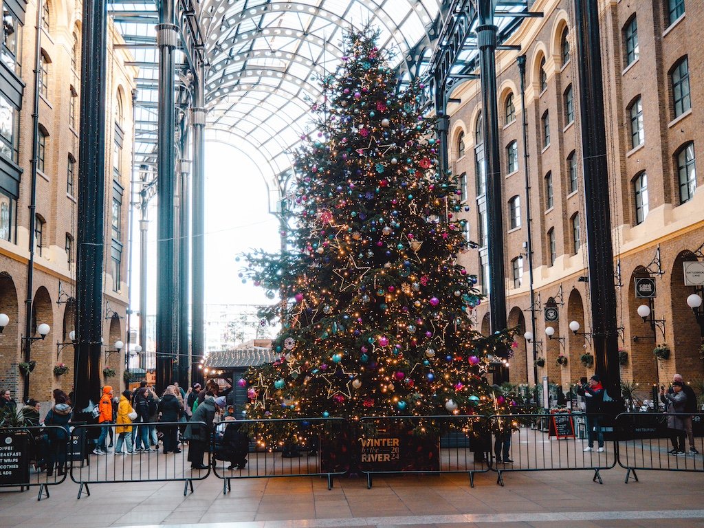 En medio de este mercado no te puedes perder la Hay’s Galleria, con un precioso árbol de Navidad y más casetas navideñas.