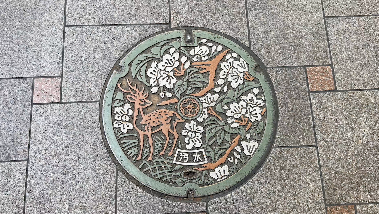 Algo que nos encanta de Japón es el «merchandising» que hacen de cada sitio. También tienes que fijarte en las alcantarillas, que aquí están decoradas con ciervos y son super chulas.
