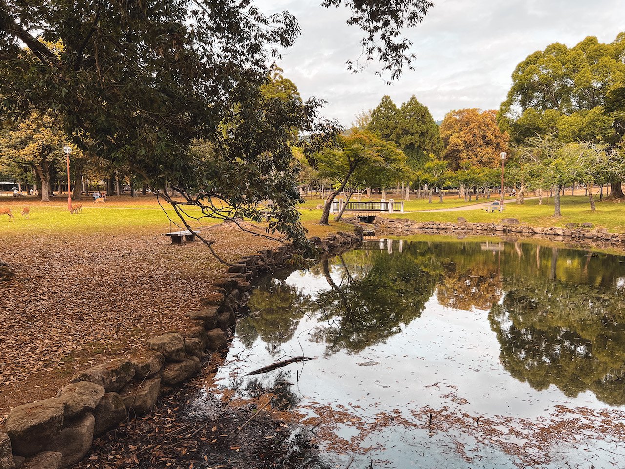 Al final de la calle comercial, llegarás a este lago, donde también suele haber ciervos y también aves e incluso tortugas. Además, tiene unas vistas muy bonitas de la Pagoda de 5 pisos Kofuku-ji.