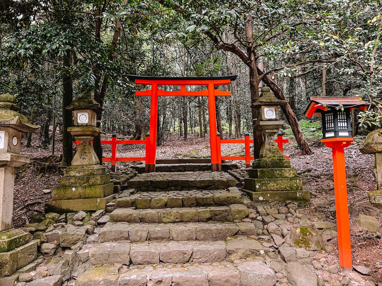 Aparte de los ciervos que puedes ver por todo el camino y que está rodeado de naturaleza, su mayor atractivo son sus más de 3.000 lámparas de piedra y de bronce que hay por todo el santuario.