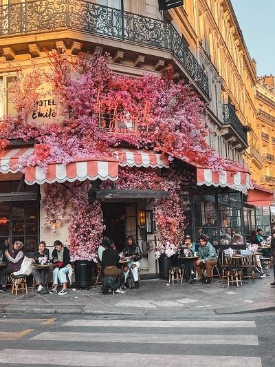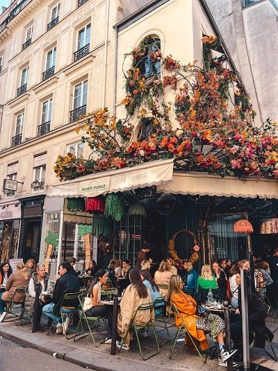 - Fachada de la terraza la Favorite. Por cierto, no te pierdas este Reel de Instagram con las terrazas más bonitas de París.