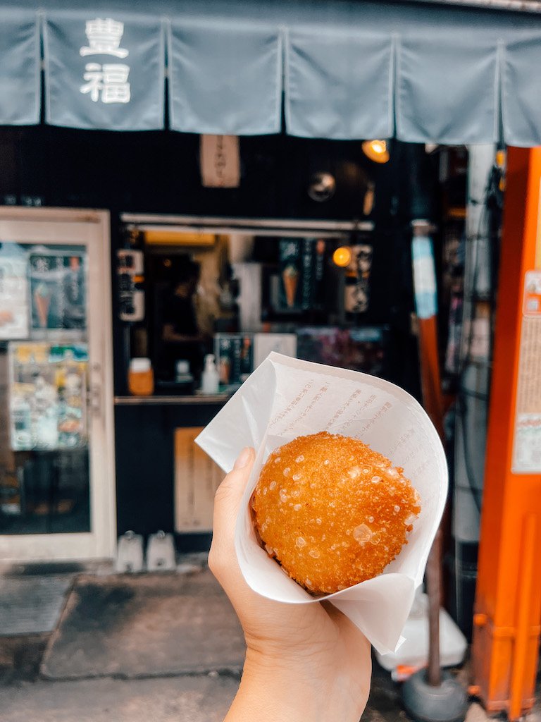 - Probar la comida callejera: Kamakura menchi, dim sum, isoage, inari sushi stick