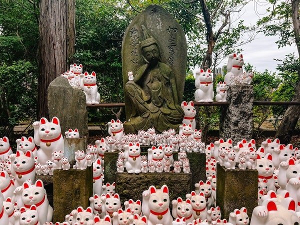 El imprescindible en este barrio es el Templo de los Maneki-Nekos, Gotokuji Temple. Un imprescindible que ver en Tokio. La entrada es gratuita y aquí es donde nace el famoso gato de la suerte japonés. Es uno de los templos que más nos gustaron.