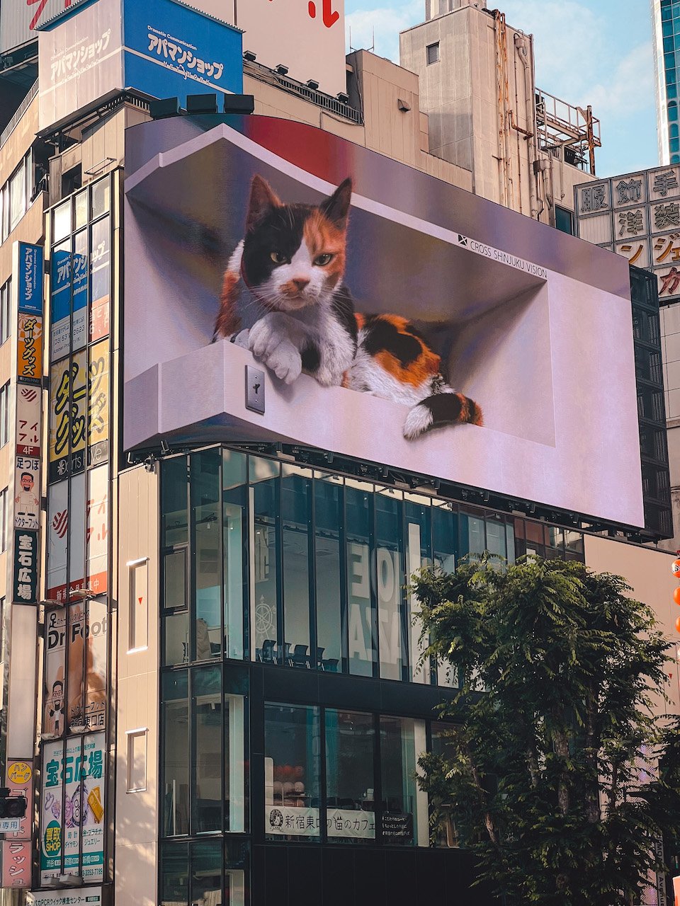 - Pasear por sus calles y alucinar con las luces de neón de todos los colores. No te puedes perder el famoso Gato en 3D, en el edificio Cross Shinjuku Vision