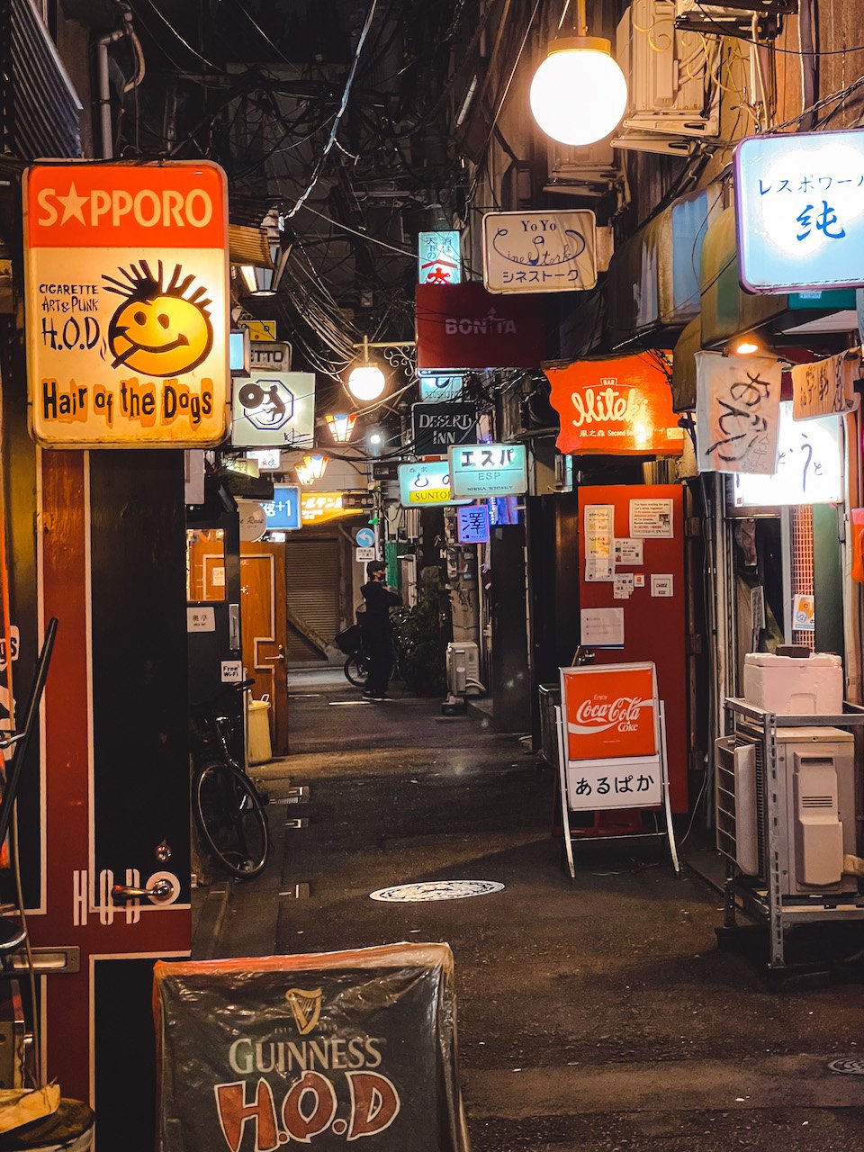 - Callejones Golden Gai, una zona de locales auténticos y tradicionales para tomar algo por la noche.