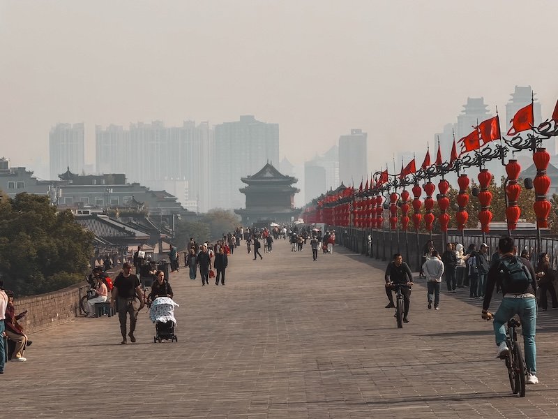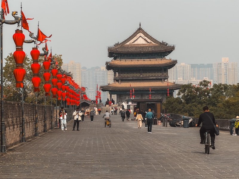 Otro imprescindible cuando hablamos de qué ver en Xian es su impresionante muralla. Tiene una longitud de 14 km y 4 puertas de entrada. Desde arriba tendrás una visión perfecta de la ciudad antigua y la moderna conviviendo juntas.