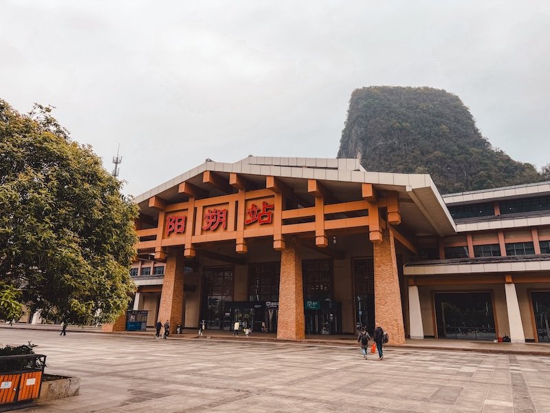 La forma más habitual de llegar a Yangshuo es en tren de alta velocidad hasta la estación Yangshuo Railway Station (situada en Xingping, a unos 45-50 minutos del centro de Yangshuo).