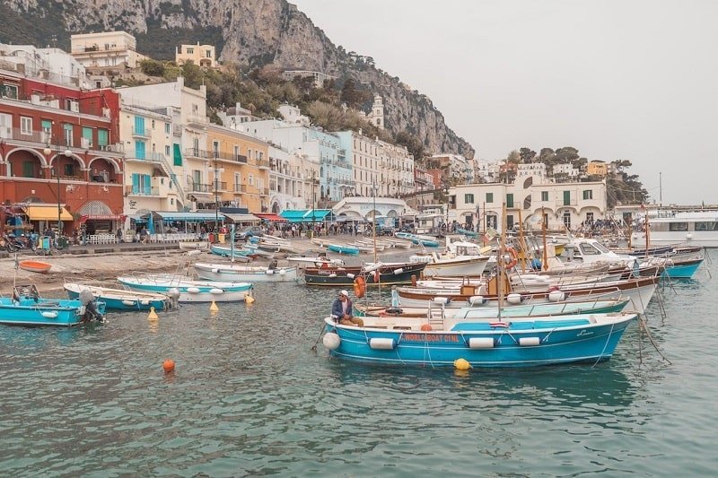 El ferry en Capri, te deja en el puerto principal de la Isla, Marina Grande.