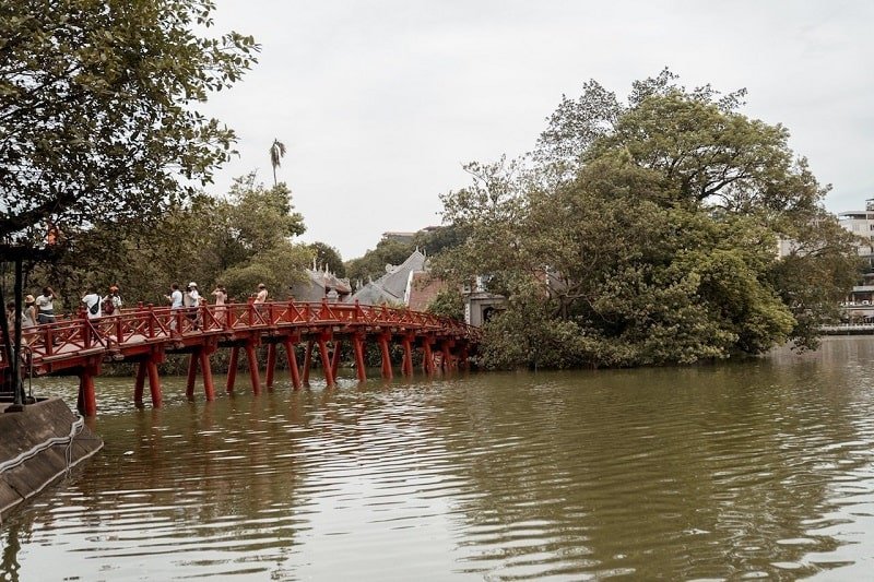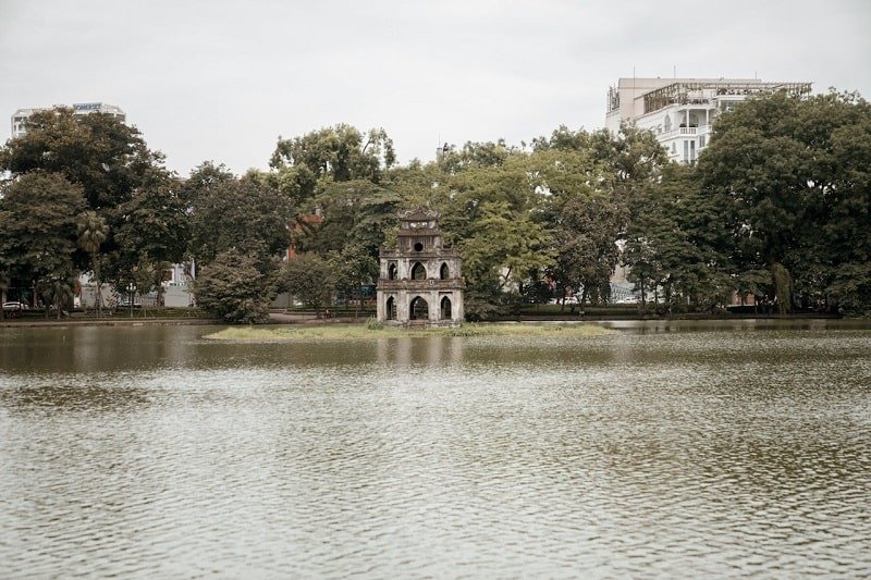 Este lago, es un respiro en el caos de Hanoi. Puedes rodearlo caminando y visitar El Templo de la Montaña de Jade a través del puente rojo Cau The Huc. En el centro del lago se encuentra la Torre Tortuga.