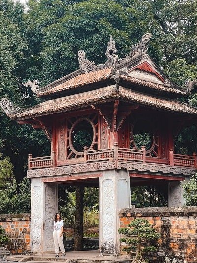 Este templo es uno de los pocos lugares históricos que no quedo destruido por la guerra. Es la primera universidad del país y se encuentra al sur de la Ciudad Imperial de Hanoi.