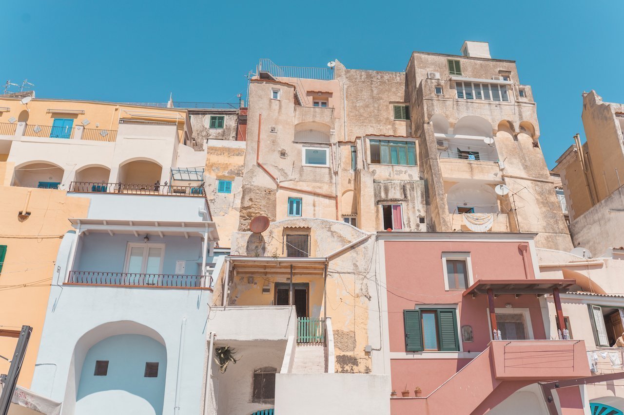 Si decides hacer noche en Procida lo mejor es que elijas un alojamiento cerca del puerto principal, donde llegan los ferries, o cerca de Marina Corricella, que es la parte más bonita de la Isla.