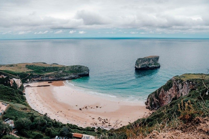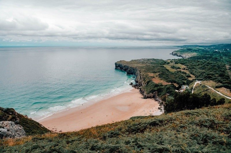 La siguiente playa que queremos ver es la Playa de Cobijero, en el pequeño pueblo de Buelna. Esta playa es especial porque es una playa interior, pero depende de como esté la marea, podrás verla con agua o no. Esta playa es bonita en pleamar. En Asturias influye mucho el tema de las mareas, según haya bajamar o pleamar. Te aconsejamos consultar antes como está la marea según lo que quieras visitar. Nosotros fuimos a medio día y no había agua. Pero nos coincidió con ese horario. Aun así, estuvimos dando un paseo por los acantilados de Buelna, camino a la Playa de Cobijero, que son una maravilla.