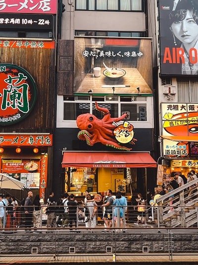 - Probar toda la gastronomía típica de Osaka: Takoyakis (bolas de pulpo) y Okonomiyakis…