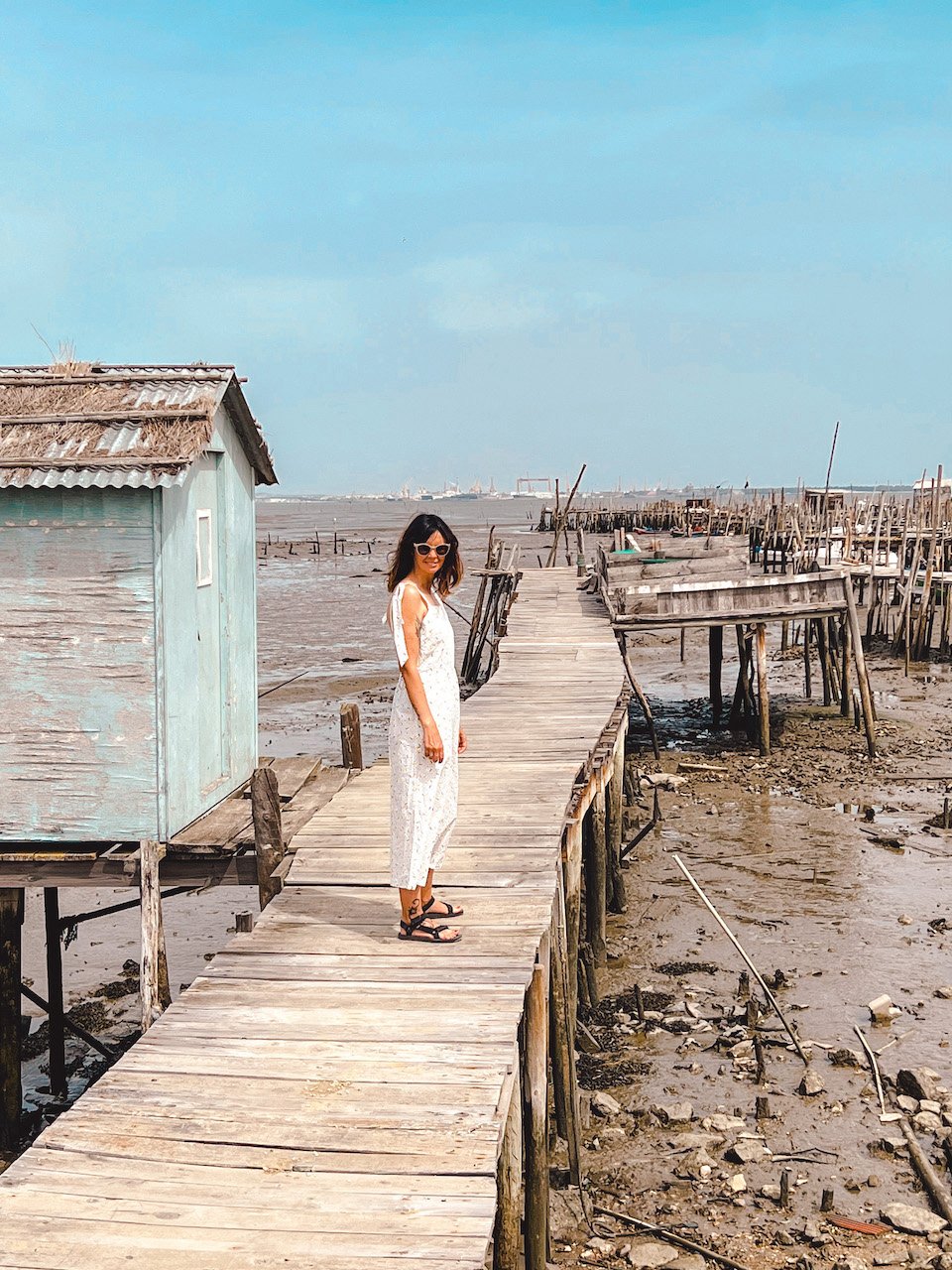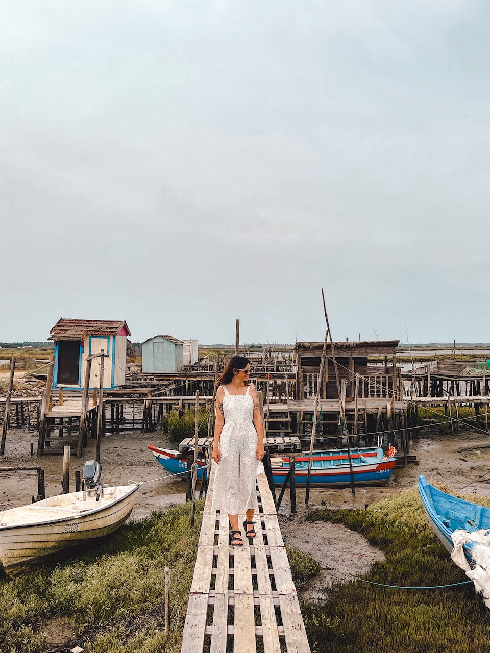 Un lugar único, que no te puedes perder en Comporta, es el Puerto Palafito da Carrasqueira. Es un pequeño puerto de pescadores, donde ellos mismos fabrican con tablas, palos y palets, sus casetas y muelles para los barcos. Es un sitio que te transporta al Sudeste asiático y muy original y diferente a todo lo que hemos visto en Europa.